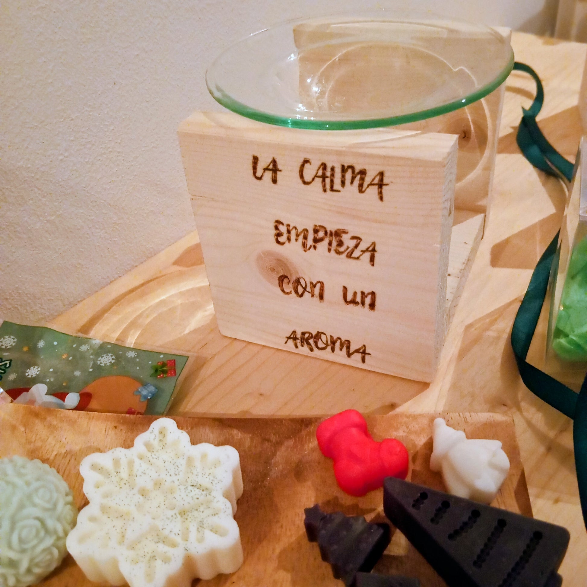 Bonito quemador de esencias y Waltmelts,con frase pirograbada a mano.