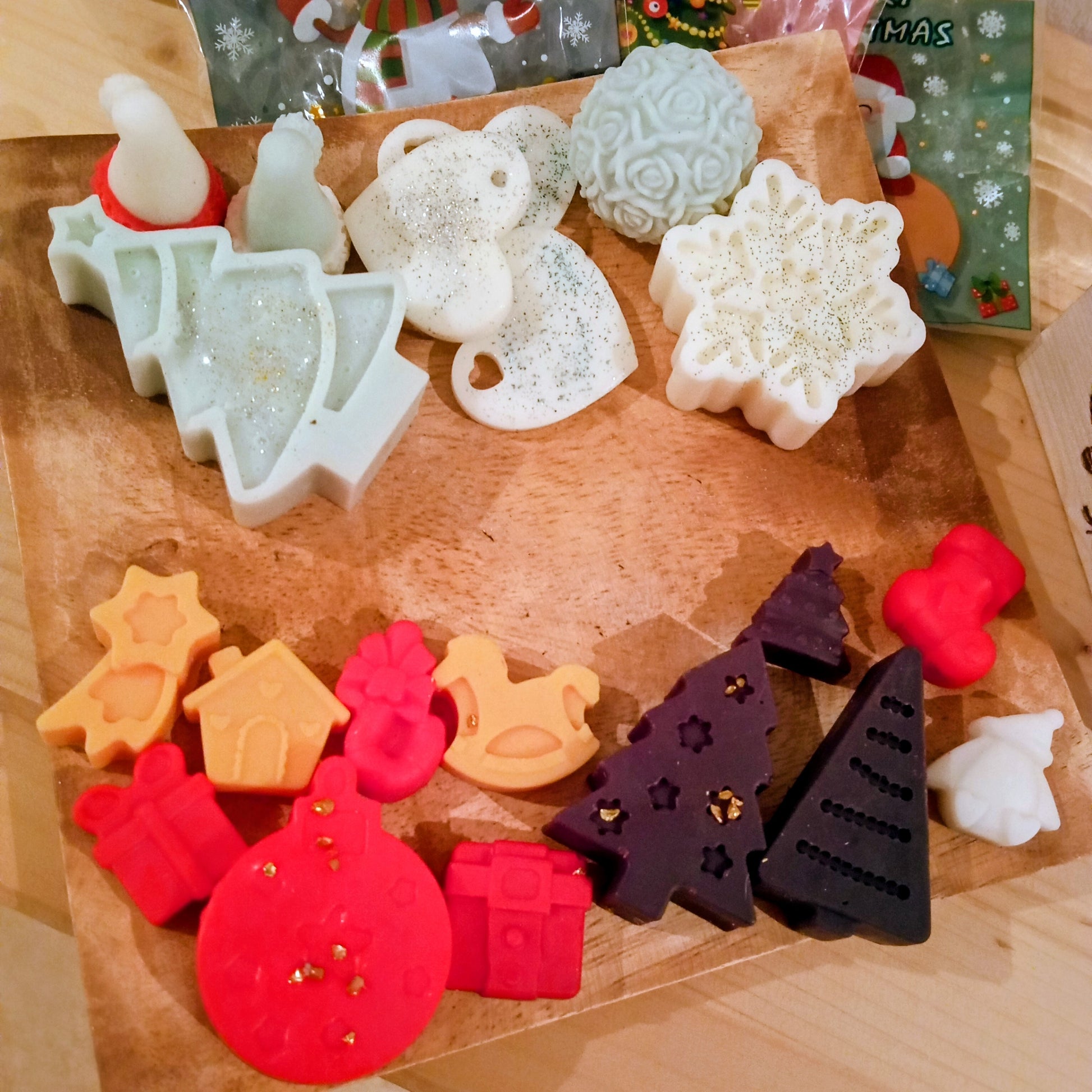 Le acompaña un bonito lote de 20 Waltmelts con formas y aromas navideños .